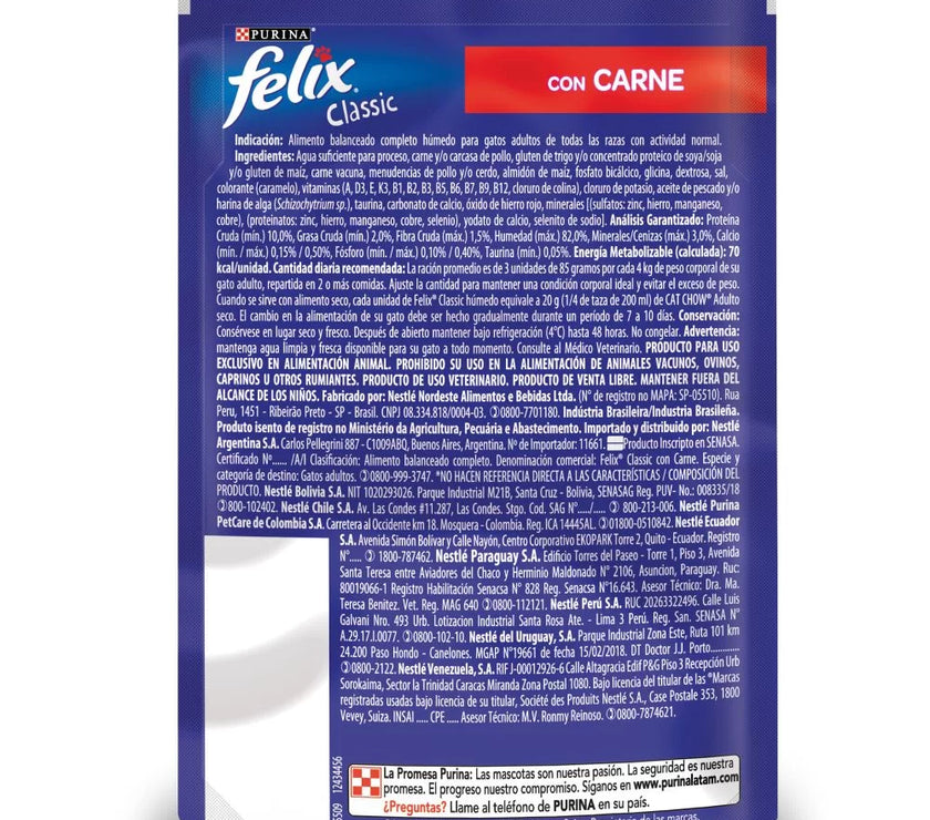 Alimento húmedo para Gatos Felix carne en salsa x 85 gr Alimento...