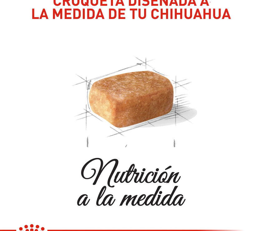Croqueta exclusiva adaptada a la mandíbula pequeña del cachorro de Chihuahua.