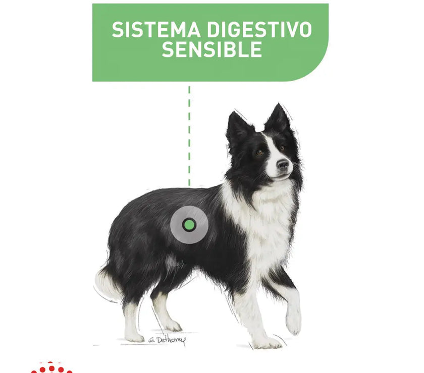 Alimento completo para perros – Para perros adultos y maduros de razas medianas (de 11 a 25 kg) – A partir de los 12 meses de edad – Perros propensos a sensibilidad digestiva.