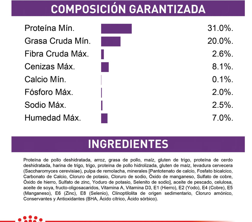3. Energía concentrada: Una salud digestiva ultra-reforzada gracias al aporte de arroz, carbohidrato muy digestible y a proteínas L.I.P. seleccionadas por su gran asimilación, limitando el contenido de residuos proteicos en el intestino.