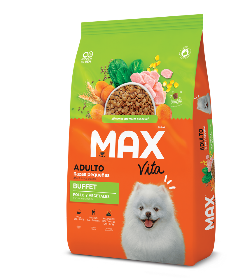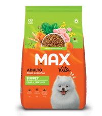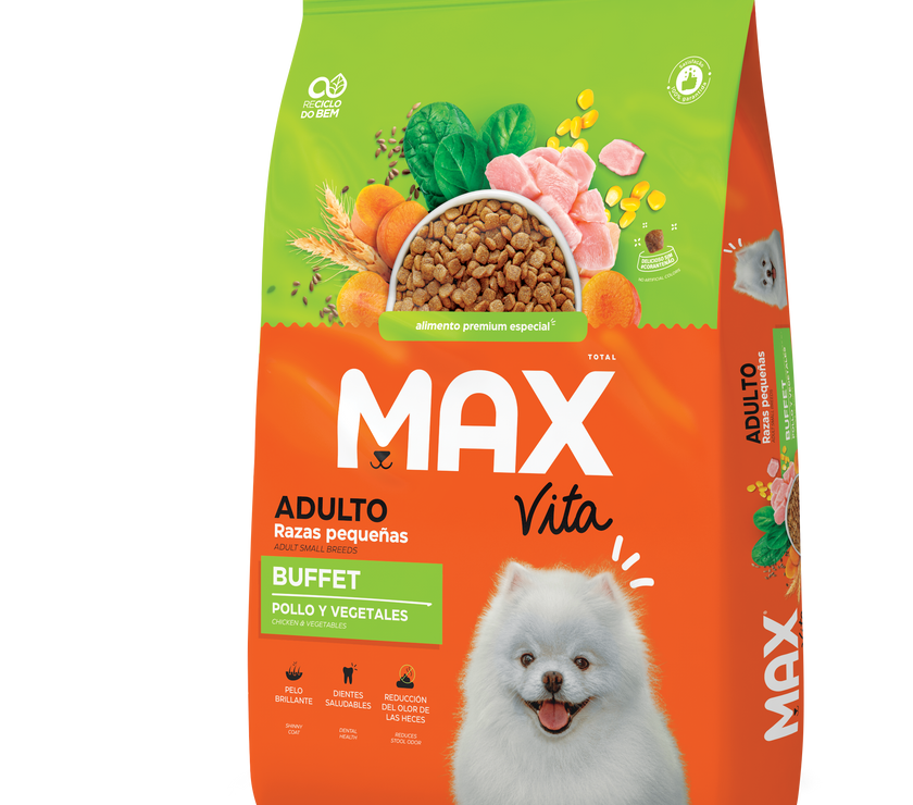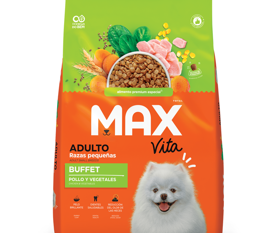 La línea Max Vita cuenta con el sello VITA COMPLEX que garantiza una alimentación 100% balanceada y llena de ingredientes que hacen que el día a día de tu mascota sea completo y feliz: desde el plato, con consumo total de la racion, hasta una excelente digestibilidad que mostrara heces firmes y sin olor. Con Max Vita tu mejor amigo estará siempre activo para disfrutar con él cada momento.