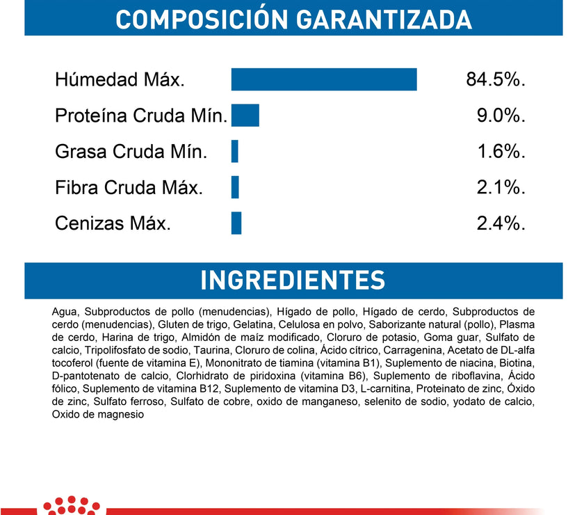 Una reducción de 15% de Calorías, solo 61 Kcal por cada 85 gramos de lata. Ayuda a minimizar la acumulación de exceso de grasa en el cuerpo a través de una reducción calórica del 15% (en comparación con Adult Instinctive TM). Suplementado con L-carnitina que ayuda a quemar el exceso de depósitos de grasa y mantener un peso ideal.